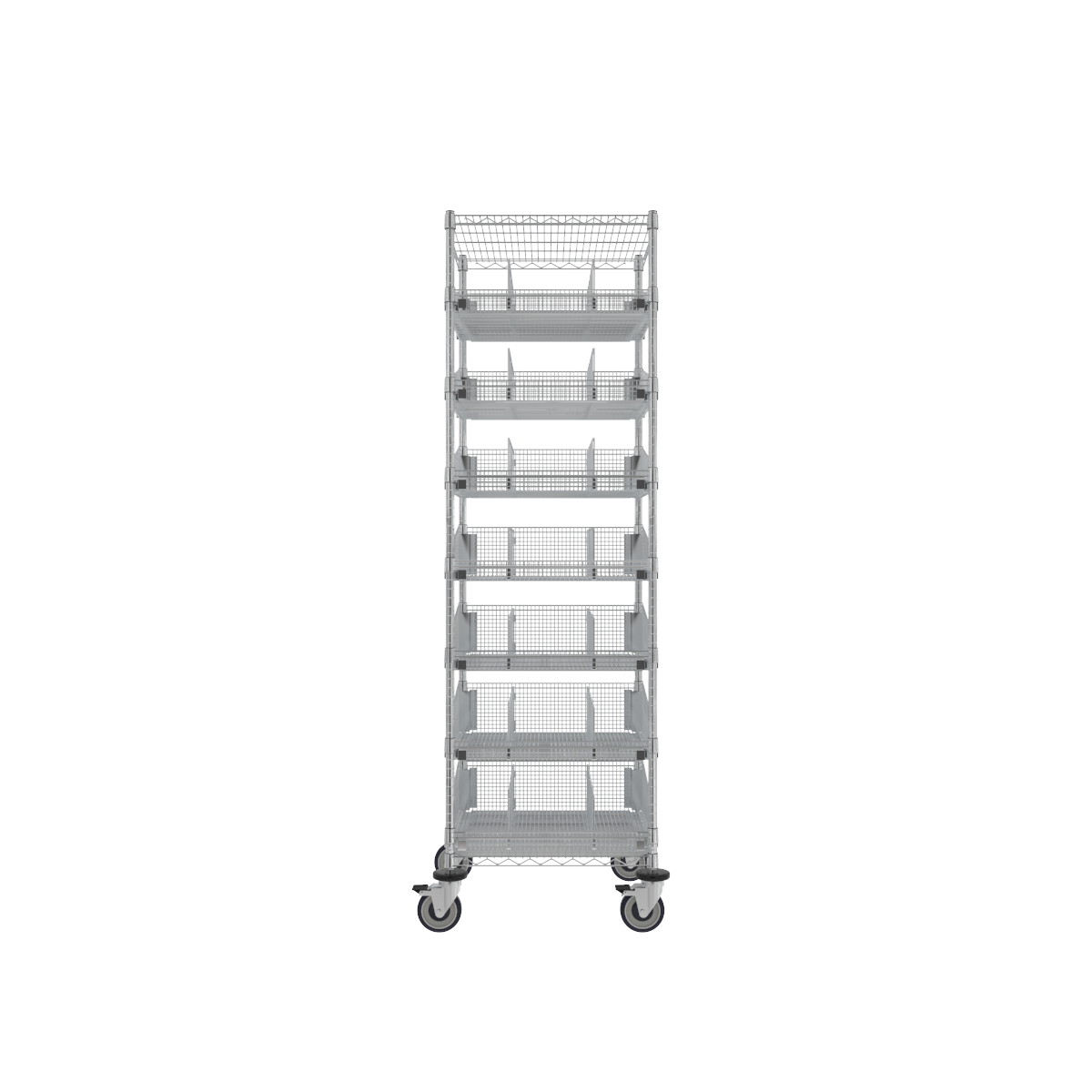 | ParWire Basket Shelving Cart, 8 Tier, 18'' D X 60'', with Slanted Basket Shelf-(Cat.#PRM1860-15) | This 8 Tier ParWire Basket Shelving Cart is configured with ParWire Fine Mesh Standard and Slanted Basket Shelves for high capacity storage. When paired with the included Dividers you can organize your stored items as needed. | 60 × 80 in | PRM1860-15 | parwire-carts | parwire-8-tier-carts | kanban parwire | |