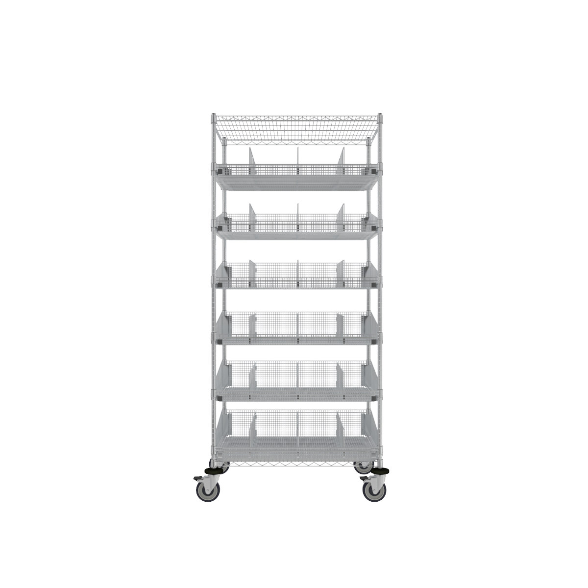 | Wire Shelving Combo Cart, 24''x60''x80'', 2-Shelves, 5 Heavy Duty Baskets, and Dividers-(Cat.#AF2511CH) | 24 × 60 × 80 in | AF2511CH | mobile | basket | wire-shelving | ||