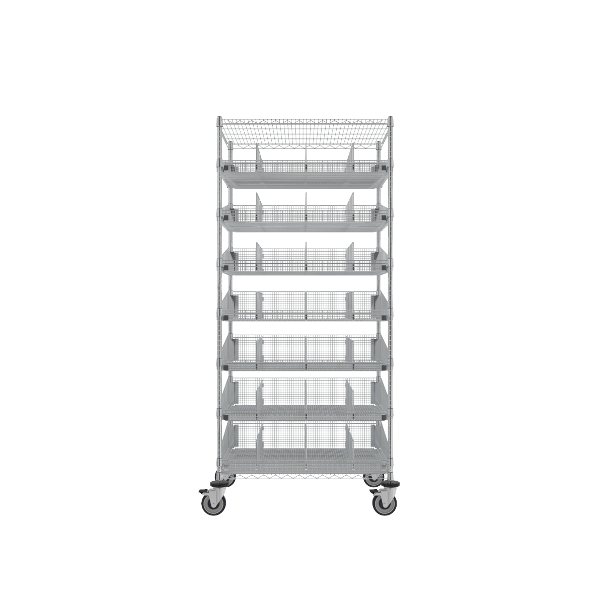 | ParWire Basket Shelving Cart, 7 Tier, 24'' D X 60''-(Cat.#PRM2460-5) | This 7 Tier ParWire Basket Shelving Cart is configured with ParWire Fine Mesh Standard Basket Shelves for high capacity storage of even your smallest items. When paired with the included Dividers you can organize your stored items as needed. | 24 × 60 × 80 in | PRM2460-5 | parwire-carts | parwire-7-tier-carts | kanban parwire | |