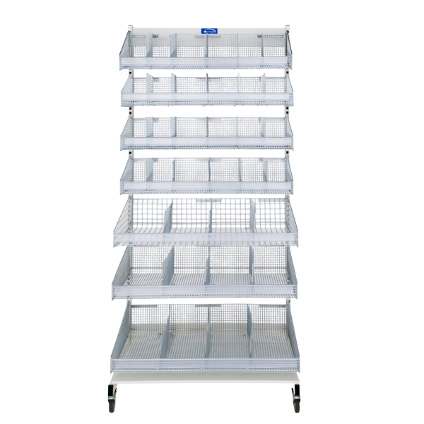 LogiQuip ParWire Systems are designed with our Fine Mesh Basket Shelves mounted on 1’’ Posts. These strong and durable units come with a mix of standard ParWire Standard and Slanted Fine Mesh Baskets Shelves and are available in a variety of sizes.