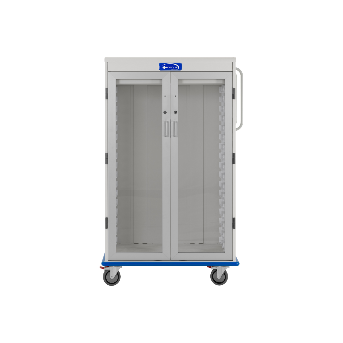 | LogiCell, One Column, Double Wide, 3/4 Height Cart, Tempered Glass Doors with Key Lock-(Cat.#2651DQHGKL) | This 3/4 Tall, Double Wide, One Column LogiCell Cart is the ideal solution for catheter storage. Our unique LogiCell Wall Panel design allows for flexible placement of painted steel shelves to organize and store catheters. With Tempered Glass Doors and Key Lock, this secure cart is built to adapt as supply needs and processes change. | 28 × 40 × 62 in | 2651DQHGKL | logicell-components | logicell-carts | logicell | |