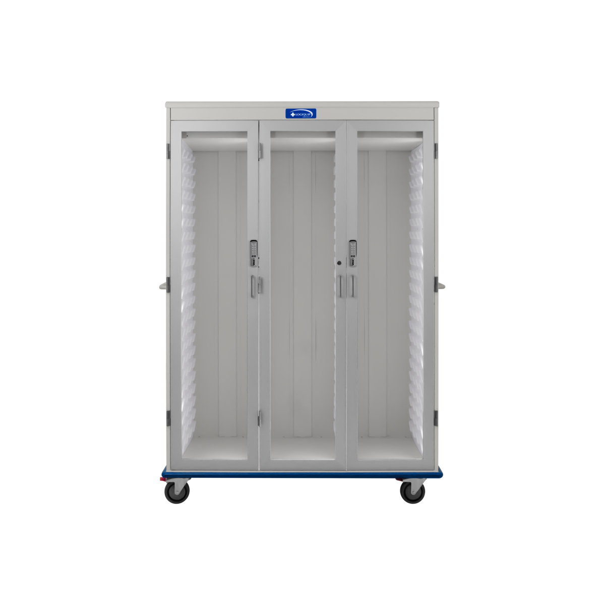 | LogiCell with LED Lighting,Triple Wide, Double Column, Glass Doors, Key Lock-(Cat.#2652TTRCHGKL-L) | This Tall, Triple Wide, Two-Column LogiCell Cart features a unique panel design that allows accessories to be placed either straight or at an angle for optimal space efficiency. Seven staggered LED lights in each column are strategically positioned along the front edge of the panels to provide maximum coverage. These recessed LED lights are flush with the panels, allowing accessories to extend out by 80% without interference. The cart also includes Tempered Glass Doors with Key Lock for enhanced security. It is designed to adapt to evolving supply needs and processes. | 28 × 80 × 57 in | 2652TTRCHGKL-L | logicell-components | logicell-carts | logicell | |