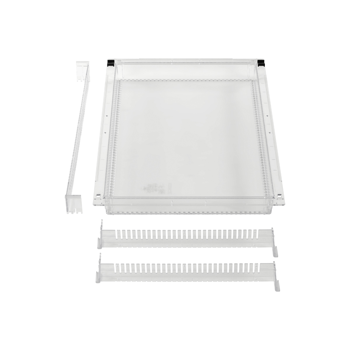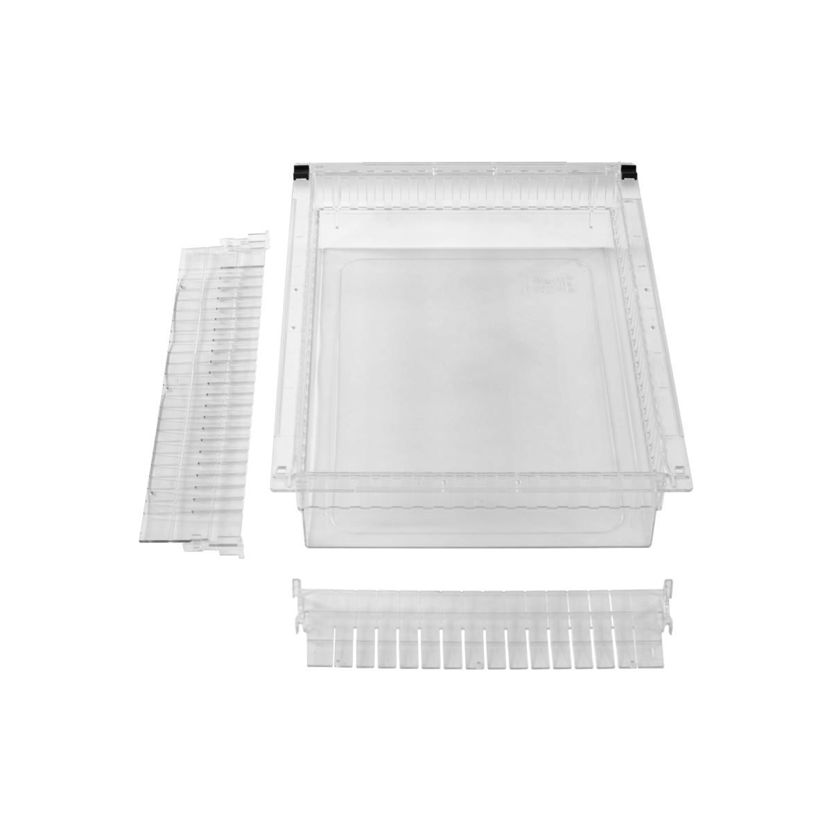 | LogiCell 2'' Clear Tub with Safety Stops-(Cat.#2TCL24) | These 2” Clear Tubs for LogiCell have an exterior dimension of 24” D x 16” W, and are used to store supplies, typically smaller or those with a concern of spills . The Clear Dividers can be installed to segment the Tub for optimization of organization | 22 × 14.25 × 2 in | 2TCL24 | logicell-accessories parstor-accessories | logicell-parstor-clear-tubs | logicell parstor | |