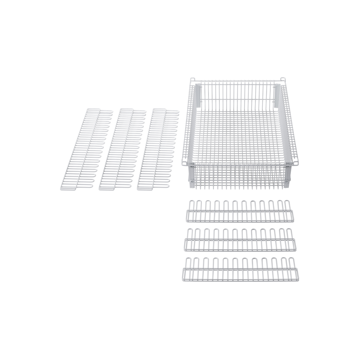| LogiCell and ParStor 8'' Wire Basket with Dividers-(Cat.#8BD11) | LogiQuip’s 8” white epoxy coated steel Wire Baskets for LogiCell and ParStor have an exterior dimension of 24” D x 16” W. Used to store supplies and the open wire structure provides air circulation . Each Wire Basket includes two (5) built-in safety stops and can be used with standard and wide units . | 24 × 16 × 8 in | 8BD11 | logicell-accessories parstor-accessories | logicell-parstor-wire-baskets | logicell parstor | |