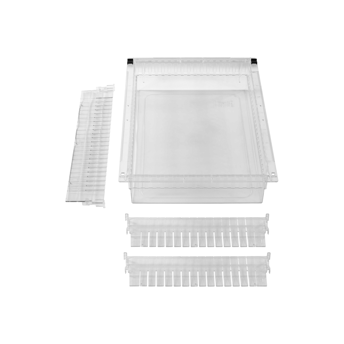 | LogiCell 4'' Clear Tub with Safety Stops and Dividers-(Cat.#4TCL24D11) | These 4” Clear Tubs for LogiCell have an exterior dimension of 24” D x 15” W, and are used to store supplies, typically smaller or those with a concern of spills . (1) Long and (1) Short Clear Dividers are included in this kit and can be used to segment the Tub for optimization of organization | 24 × 16 × 8 in | 4TCL24D11 | logicell-accessories parstor-accessories | logicell-parstor-clear-tubs | logicell parstor | |