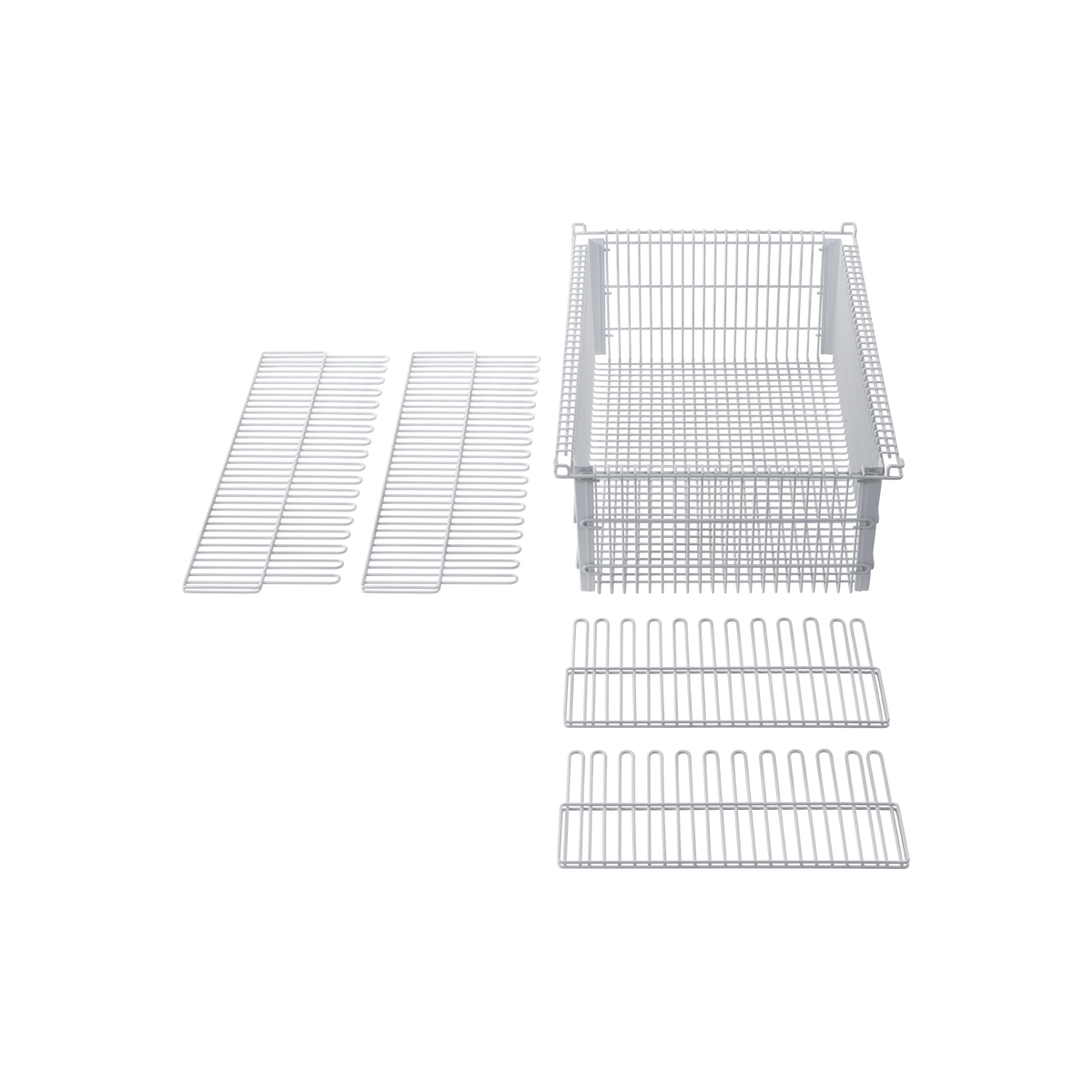| LogiCell and ParStor 5'' Wire Basket with Dividers-(Cat.#5BD12) | LogiQuip’s 5” white epoxy coated steel Wire Baskets for LogiCell and ParStor have an exterior dimension of 24” D x 16” W. Used to store supplies and the open wire structure provides air circulation . Each Wire Basket includes two (5) built-in safety stops and can be used with standard and wide units . | 24 × 16 × 5.55 in | 5BD12 | logicell-accessories parstor-accessories | logicell-parstor-wire-baskets | logicell parstor | |