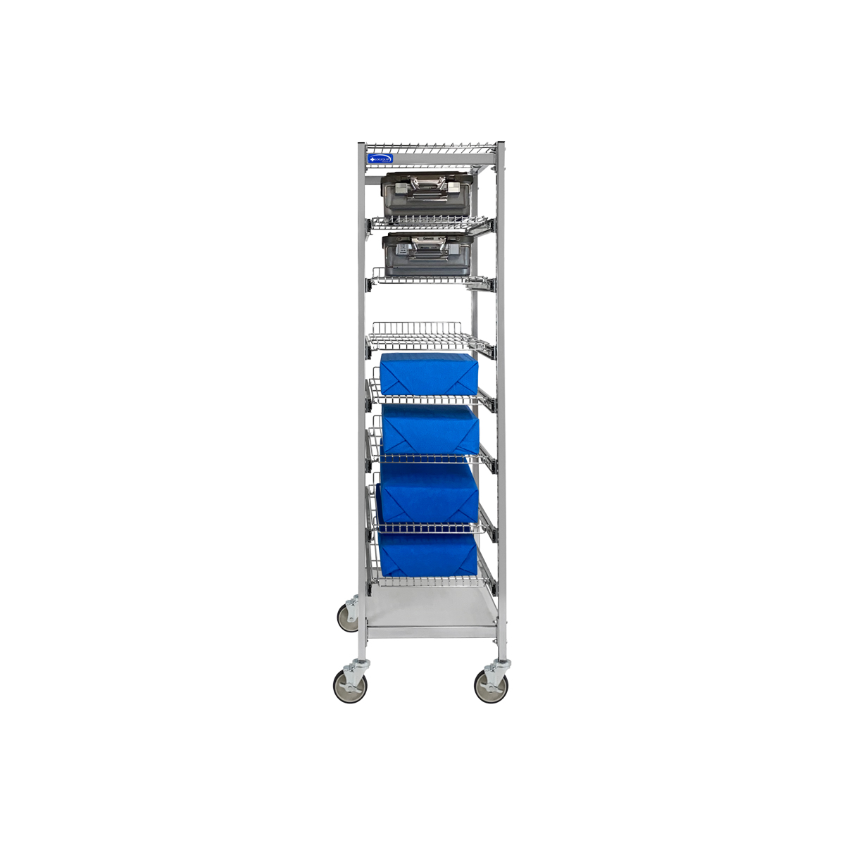 | ParStor Basket and Tote Shelving Kit, 9-Tier-(Cat.#PS68S) | LogiQuip’s Stationary ParStor Starter Kit provide high density sterile storage with a small footprint, ideal for when space is at a minimum. Customize this starter frame with accessories including Wire Baskets, Clear Tubs, Wire Shelves, and Transport Baskets. | 24 × 20 × 68 in | PS68S | parstor-carts | open-storage | parstor | |