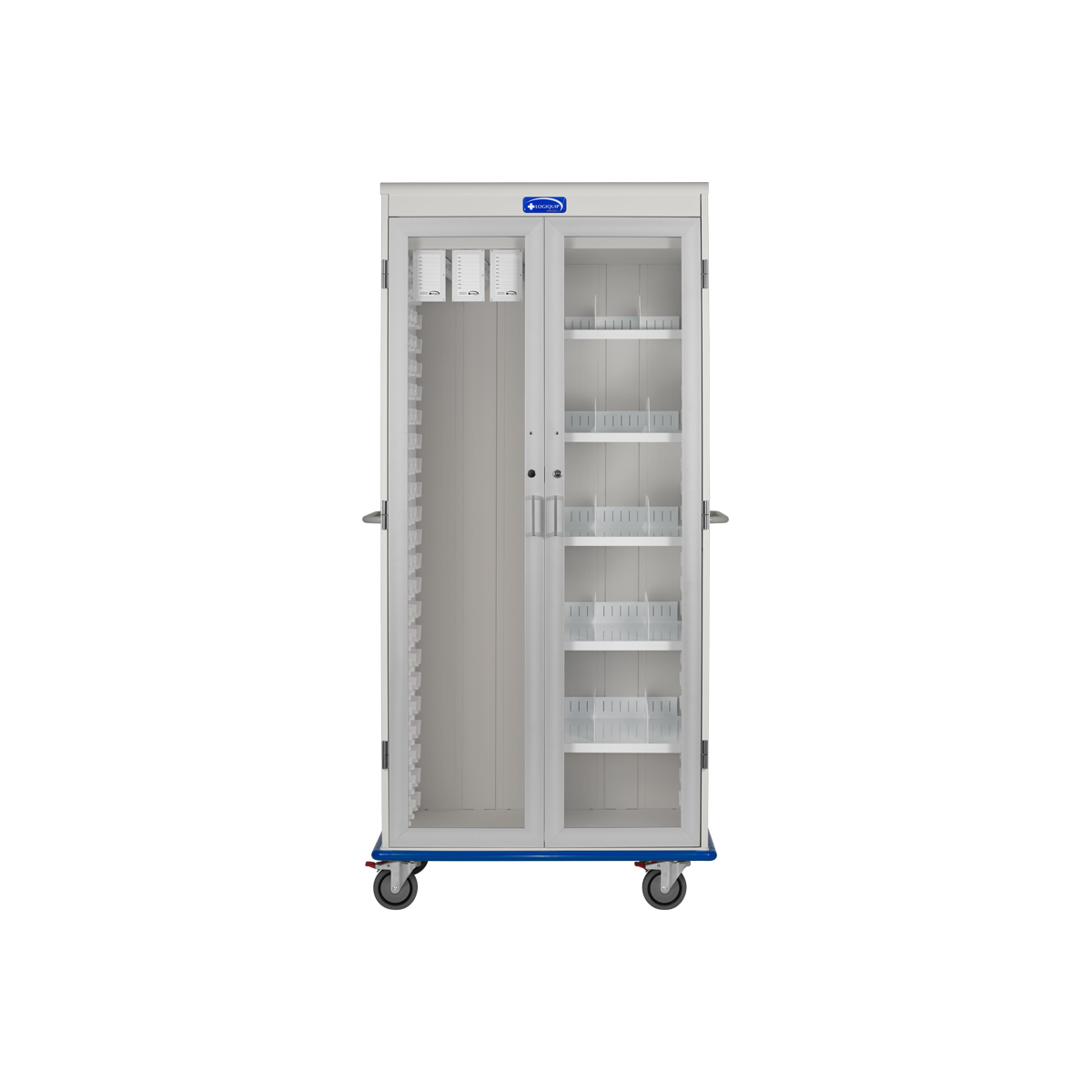 Two Column, Double Wide LogiCell Catheter Cart with Shelves, Tempered Glass Doors with Key Lock-(Cat.#2652DTHGKLCAT7)